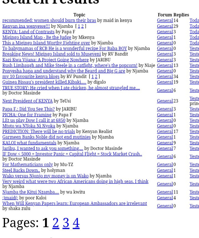 The funnier thing is, we knew each other's online personas so well that it was easy to identify who was who simply by reading a few of their posts. For example I knew KenyanPlato was Njamba only two posts in.
